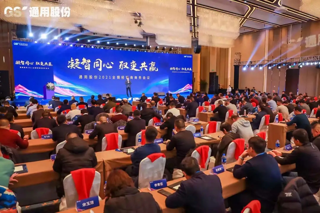 12月24日,正逢圣誕節(jié)平安夜,通用股份以凝智同心 馭變共贏為主題召開(kāi)2021全鋼經(jīng)銷商商務(wù)會(huì)議,來(lái)自全國(guó)各地的近200位經(jīng)銷商歡聚一