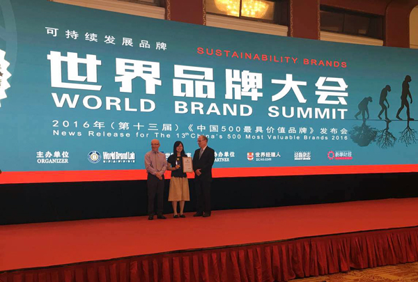 6月22日,由世界品牌實驗室(World Brand Lab)主辦的“世界品牌大會”在京舉行,會上公布了2016年(第十三屆)《中國500強最具價值品牌