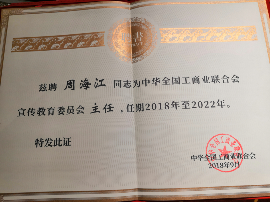 周海江擔任全國工商聯宣傳教育委員會主任