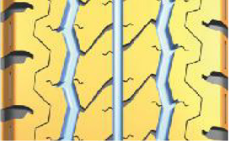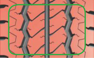 ·胎面接地面積較大。花紋塊之間具有加強筋設計。輪胎磨損更加均勻,使用壽命更長。